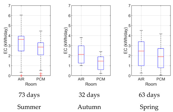Figure 6. Seasonal result of daily energy consumption (EC). Winter is not included because of insufficient days with valid data.