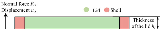 Additionally, the similar expressions for displacement uli(z) and normal force Fli(z) of the composite of the copper lid (lid I or lid II) and protective shell (as shown in Figure 4) are