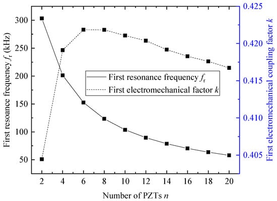 The influence of the number of the PZT discs on the first resonance frequency and electromechanical factor of SAPSs.