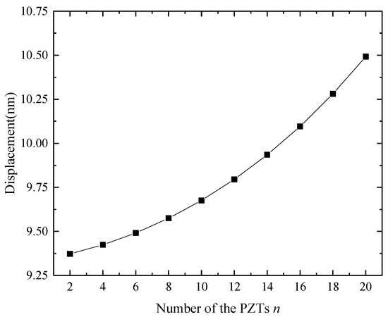 Figure 5 shows the influence of the number of the PZT discs on the first resonance frequency and the first electromechanical coupling factor, and Figure 6 plots the influence of the number of the PZT discs on the displacement of SAPS at z = hl1 with the frequency f = 20 kHz.