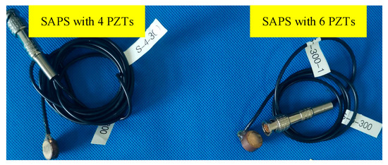 As shown in Figure 1, SAPS mainly consists of a protective shell, a PZT stack, two copper lids (lid I and lid II), epoxy, and a shielding cable. The PZT stack is comprised of PZT discs connected in series, and the epoxy is filled in the gap between the cylinder and stack. When the PZT stack is fabricated, the adjacent two PZT discs are bonded together by conductive adhesive under a constant pressure force of 150 N for at least 12 h. After the PZT stack is fabricated, the shielding cable is soldered to the lateral side of the PZT stack. Lastly, all the parts are assembled by epoxy resin under a constant force of 150 N for at least 24 h. The clearance between the PZT stack and the protective shell is filled with epoxy resin before the two lids are fixed.