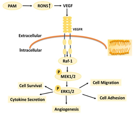 3.6. Effects of PAM on Expressions of Key Proteins in VEGFR-2 and MEK-ERK Signaling Pathways
