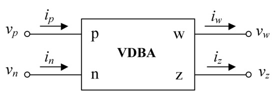 The electrical symbol of the VDBA is shown in Figure 1. The defining characteristic of the VDBA can be described by the following matrix equation: