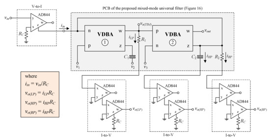 Proposed mixed-mode biquadratic filter using VDBAs.