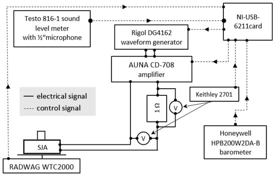Atmospheric pressure was measured using a Honeywell HPB200W2DA-B barometer, with an accuracy of ±40 Pa. All devices were controlled using LabVIEW software with the National Instruments NI-USB-6211 card. All devices and their connections were presented in Figure 3. The measurements uncertainty was presented in Table 2.