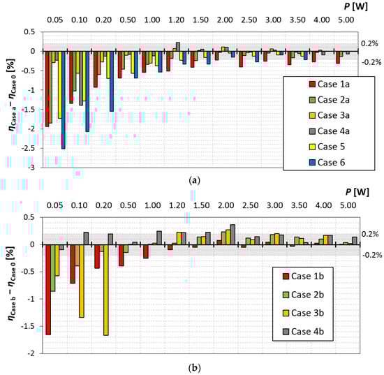 Efficiency differences between case 0 and cases a (a) and b (b).
