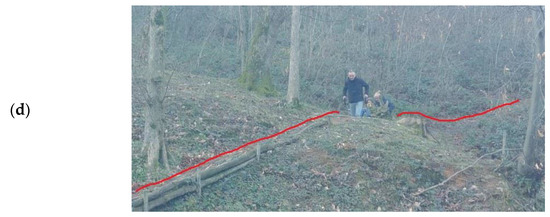 Example of field tests: (a) single step test; (b) flat path on grass; (c) grass track with ups and downs; (d) downhill mountain track.