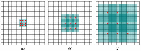 Schematic (a) is a 1-dilated convolution (b) is a 2-dilated convolution (c) is a 4-dilated convolution diagram of DCNN.
