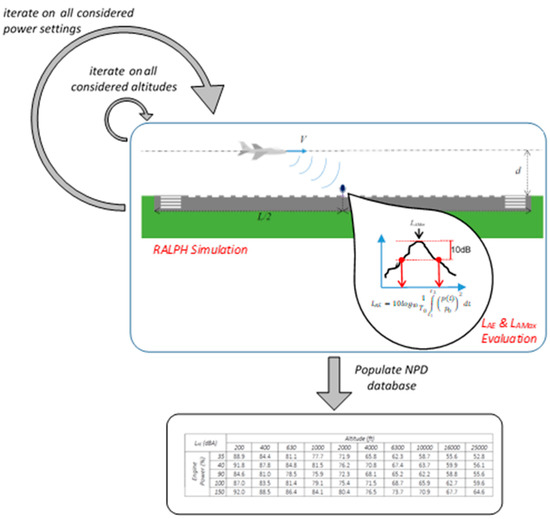 Noise–power–distance (NPD) databases play a central role in conducting noise impact assessments for any type of aircraft. This is even more important when considering new configurations, such as those equipped with brand new hybrid/electric engines. As reported in [4], the Federal Aviation Administration, Office of Environment and Energy (FAA-AEE) developed an Aviation Environmental Design Tool AEDT that uses NPD results as a source term in evaluating aircraft noise and emissions for airport environmental studies.
