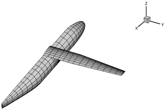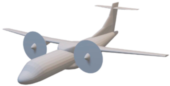 The baseline configuration is named “Configuration A”. This configuration consisted of a simplified version of the regional aircraft ATR42 geometry, as in Figure 4.