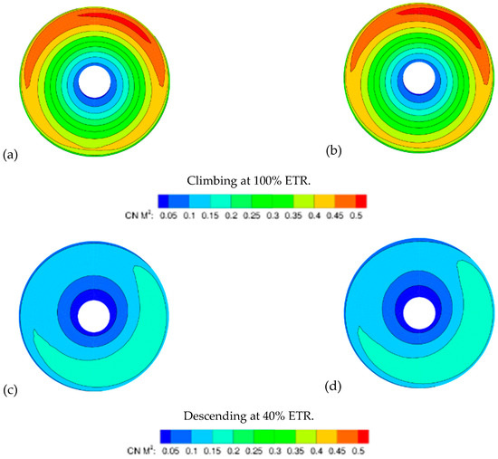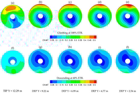 In the case of Motorization 2, the nominal values for the propellers’ speeds were selected in 100%-ETR climbing flight only. An adjustment in pitch was necessary in order to obtain nominal thrust from each propeller. The revolutions per minute RPMs and resulting collective pitch angles are summarized in Table 4.