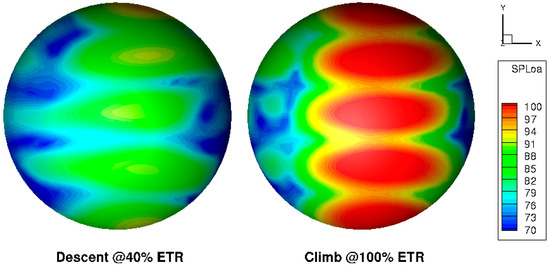 Starting from the unsteady aerodynamic blade surface pressure distributions, the results of the CIRA aerodynamic BEM code RAMSYS, the tonal noise components, were computed on a hemispheric surface encompassing all acoustic energy propagating in the downward direction.