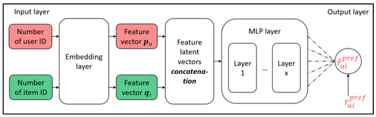 - He, X.; Liao, L.; Zhang, H.; Nie, L.; Hu, X.; Chua, T. Neural Collaborative Filtering. In Proceedings of the 26th International Conference on World Wide Web, Perth, Australia, 3–7 April 2017; pp. 173–182. [Google Scholar] [CrossRef] [Green Version]