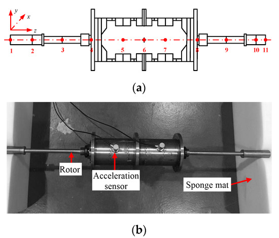 The test rotor for the modal test. (a) Rotor model. (b) Rotor test bench.