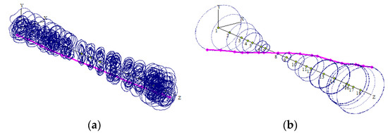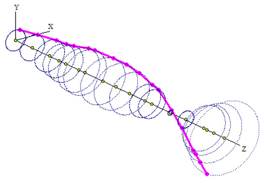 The obtained sparse matrices (M, K, G) can improve the calculation speed for vibration responses. However, the obtained mode shapes are not smooth enough because the continuous rotor is discrete in a finite number of elements. Similar to other modeling methods, such as the lumped mass method, finite element method with beam theory, etc., [3,17,18], this is an inevitable defect, but it will not affect the calculation accuracy of natural frequency, mode, and response.