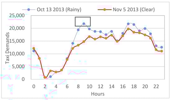- Moreira-Matias, L.; Gama, J.; Ferreira, M.; Damas, L. A predictive model for the passenger demand on a taxi network. In Proceedings of the 15th International IEEE Conference on Intelligent Transportation Systems, Anchorage, AK, USA, 16–19 September 2012; pp. 1014–1019. [Google Scholar]
