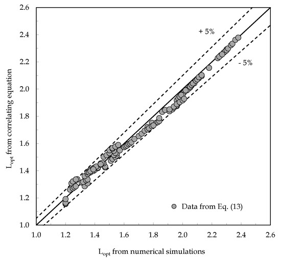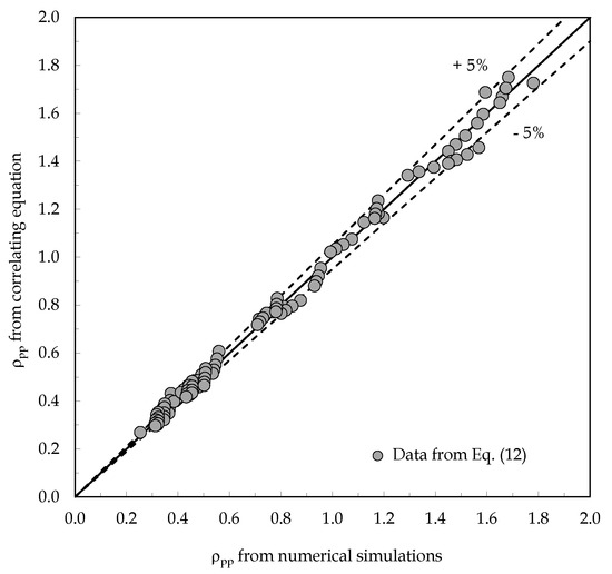 The standard deviation of the errors of Equations (11) and (12) are 3.2% and 3.5%, respectively, with a percent range of error of ±5% and a 95% level of confidence, as shown in Figure 13 and Figure 14.