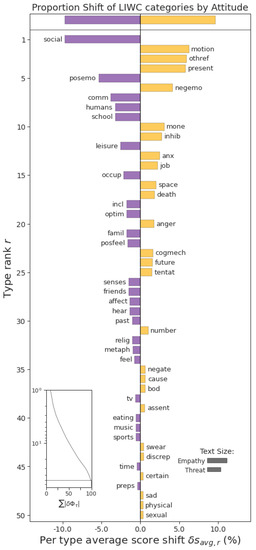 - Gallagher, R.J.; Frank, M.R.; Mitchell, L.; Schwartz, A.J.; Reagan, A.J.; Danforth, C.M.; Dodds, P.S. Generalized word shift graphs: A method for visualizing and explaining pairwise comparisons between texts. arXiv 2020, arXiv:2008.02250. [Google Scholar]