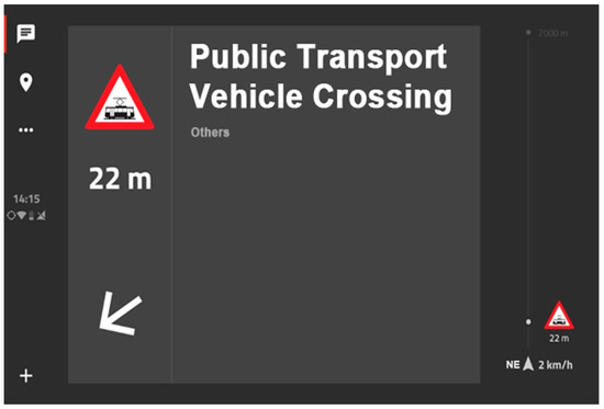 Figure 10 also shows the distance to the event, which is 22 m. At the time the vehicle is waiting for the tram to pass, there is the word “Now” instead of distance. Some drivers would simply omit this word.