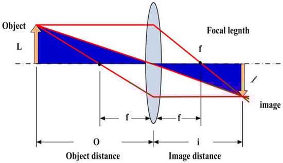 where O is the distance (mm) from the lens to the object, which is the working distance; i is the distance (mm) from the lens to the image sensor; f is the length (mm); L is the size (mm) of the object; and l is the number of pixels in the image corresponding to the object.
