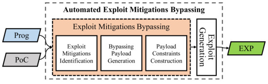 - Bypassing Payload Generation. The bypassing payload generation is mainly to realize the generation of necessary parameters for the mitigations bypassing according to the expert experience. This part focuses on automating existing bypassing technology for exploit mitigations.