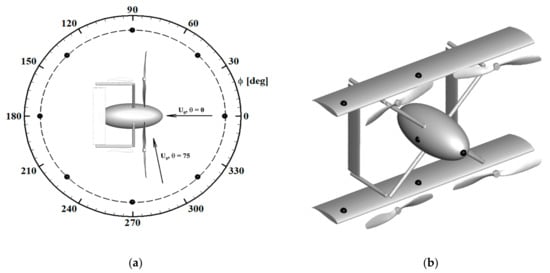 - Sinnige, T. Aerodynamic and Aeroacoustic Interaction Effects for Tip-Mounted Propellers: An Experimental Study; Delft University of Technology: Delft, The Netherlands, 2018. [Google Scholar]