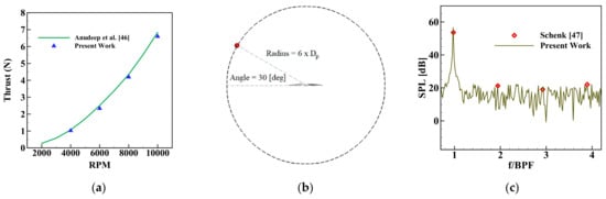 - Yang, Y.; Liu, Y.; Li, Y.; Arcondoulis, E.; Wang, Y. Aerodynamic and aeroacoustic performance of an isolated multicopter rotor during forward flight. AIAA J. 2020, 58, 1171–1181. [Google Scholar] [CrossRef]