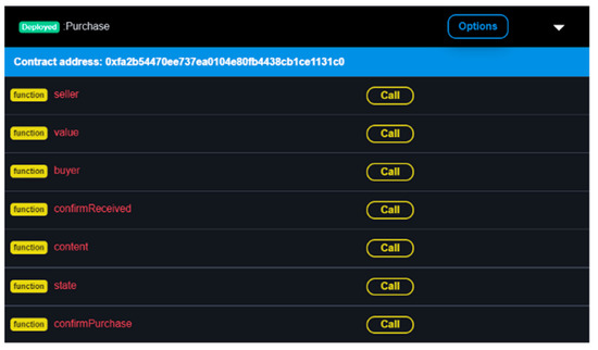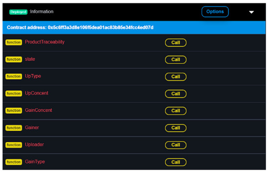 A smart contract can be deployed after compilation, and a user can implement the corresponding operation by calling a smart contract. The deployment results are shown in Figure 8 and Figure 9. We use EthFiddle pre-stored accounts; the main account is the transaction initiation account, and the remaining accounts are the main participants of the supply chain.