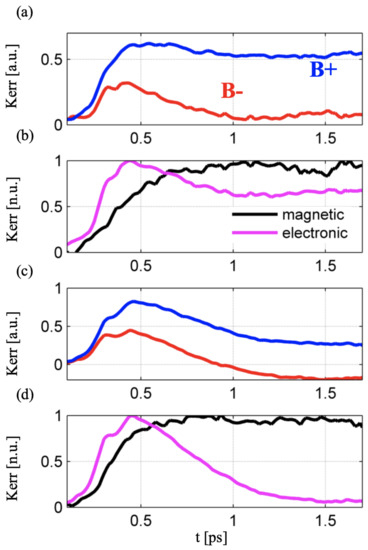 - Zhang, G.P.; Hübner, W.; Lefkidis, G.; Bai, Y.; George, T.F. Paradigm of the time-resolved magneto-optical Kerr effect for femtosecond magnetism. Nat. Phys. 2009, 5, 499–502. [Google Scholar] [CrossRef]
