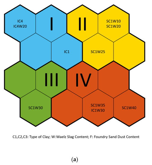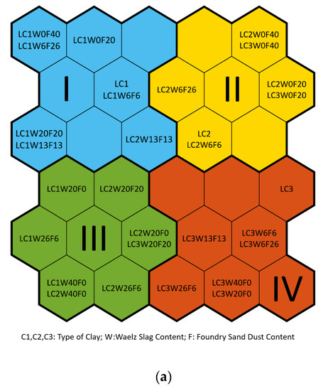 - Coronado, M.; Segadães, A.M.; Andrés, A. Combining Mixture Design of Experiments with Phase Diagrams in the Evaluation of Structural Ceramics Containing Foundry By-Products. Appl. Clay Sci. 2014, 101, 390–400. [Google Scholar] [CrossRef]