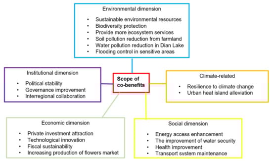 From a shared beneficial perspective (Figure 3), the benefits of collaborative projects manifest not only in terms of science, technology, and the environment, but also in social, economic, political, and climate-related dimensions. For instance, incorporating steps to mitigate urban heat island impacts into Sponge City building might promote public participation, hence, consolidating funds for public-private partnerships. The water sensitive city construction in Kunming and Guangzhou has several benefits, including the reduction of water pollution, the purification of sewage by natural processes, and the effect of natural purification on biodiversity. Floodwaters have an adverse effect on people’s daily lives and economic activity, impeding social development and policy execution.