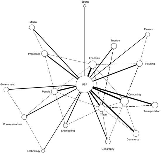 Over large documents, it is very likely that the semantic maps generated will be very complex and difficult to read. To further simplify these maps for visual inspection, we will apply the PathFinder networks algorithm []. Network scaling represents another method based on graph theory. Pathfinder networks are derived from proximities for pairs of entities. The PathFinder network uses the proximity of concepts to generate simplified structures revealing the underlying organization of the semantic network by retaining only the most relevant connections in a semantic network while removing cycles.