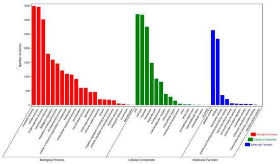 Based on the sequences of known and novel miRNAs, the candidate target genes were predicted using the psRNA Target Server (http://plantgrn.noble.org/psRNATarget/, accessed on 20 September 2020) [38]. All predicted miRNA targets and differentially expressed miRNA targets were annotated based on the following databases: Nr (NCBI non-redundant protein sequences), Nt (NCBI non-redundant nucleotide sequences), Swiss-Prot (Swiss-Prot protein database), Pfam (Protein family), COG (Cluster of Orthologous Groups database), GO (Gene Ontology database, http://www.geneontology.org/) and KEGG (Kyoto Encyclopedia of Genes and Genomes pathway database) pathway analysis (https://www.kegg.jp/kegg/pathway.html, accessed on 22 September 2020) [39]. For GO and KEGG analysis, the calculated p-value was processed through FDR (false discovery rate) correction, taking FDR ≤ 0.05 as a threshold.