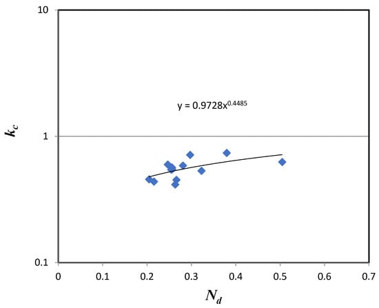 Plot of collection rate constant () versus vessel dispersion number (Nd).