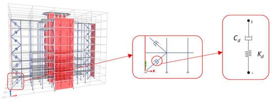 For the diagonal configuration to the damper-brace assembly, it is clear that the device and the brace are connected in series. The FD stiffness value is considered infinity, so the total stiffness value to integrate while modeling is equal to the brace system to avoid brace buckling, as explained in Equation (11) [55]: