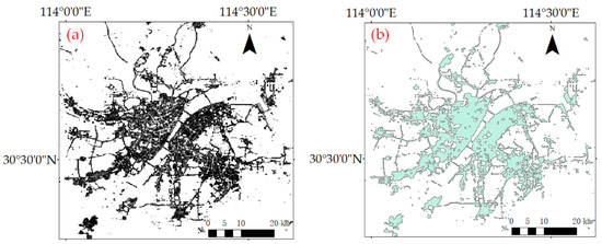 Due to the differences of light intensity of roads between urban area and rural areas, it was essential to distinguish the urban boundary of Wuhan. Although the administrative boundary could be obtained from the census data, some rural areas still existed within the administrative boundary.
