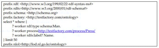 SPARQL is W3C’s standard query language for data constructed in LOD format. It has a form similar to SQL for retrieving the desired data from a relational database [18].