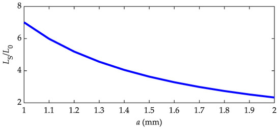 Relationship between LS/L0 and a of the differential inductive sensors with the zero air gap of δ0 = 0.7 mm. Note: a is the side length of the sensor core leg.