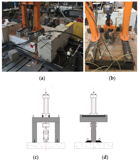 Each masonry wall was placed horizontally and positioned between two concrete beams, one of them was fixed and the other one could move over a free-friction support, which was attached to steel rails over an I section steel beam (Figure 5). To simulate upload, the wall was subjected to a compressive stress equal to 0.2 MPa applied with two hydraulic jacks with 50 kN load-carrying capacity each. The unconfined test set-up is shown in Figure 5. The tensile load was applied with a hydraulic jack with carrying capacity of 50 kN and measured with a load cell of 50 kN. The displacement was measured with two LVDTs symmetrically positioned on the right and left side of the anchor (at a distance of about 30 cm from the anchor) capturing the relative displacement between the anchor and the wall.