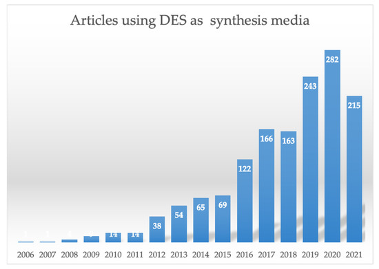 Manuscripts in which DESs have been used as synthesis media from 2006 to 20 October, 2021. Source: Web of Science.