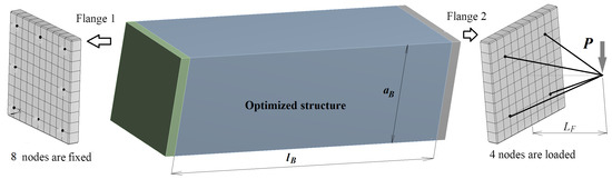 The arm of the manipulator consists of three parts. The arm body is represented by a block between two flanges, where the first flange is fixed and the second flange is loaded by a force, as shown in Figure 3.