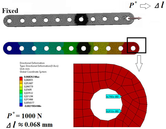 Meeting the condition of Equation (9) for significantly simplifies the optimization process. Methods for optimizing truss structures can be found in the literature, see Section 1, where the cross-sectional area can take on discrete values, and one material is considered. Then components (for example, for ) can be defined by Equation (7) as and is fulfilled for one material: