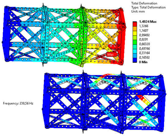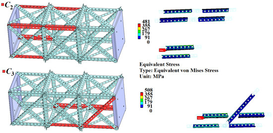 For the solution of the truss structure, the Finite Element Method (FEM) [15] can be used. Commercial software based on FEM (e.g., ANSYS® [16]) offers a variety of elements and allows them to be combined in different types of analysis with different settings. They can also be used to solve components made from a variety of materials, including composites. Details, such as notches or joints, can be solved by submodelling methods, etc.