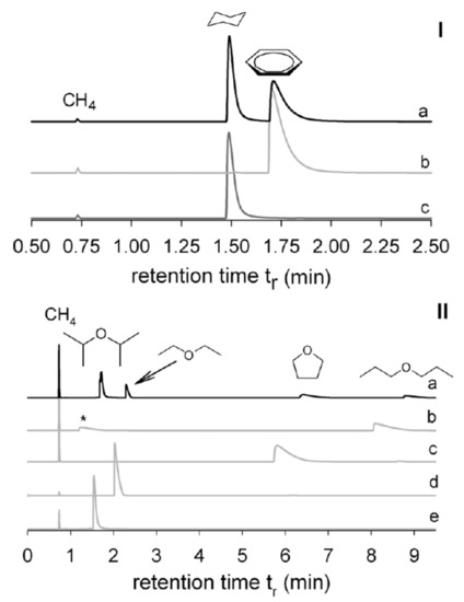 - Katsanos, N.A.; Thede, R.; Roubani-Kalantzopoulou, F. Diffusion, adsorption and catalytic studies by gas chromatography. J. Chromatogr. A 1998, 795, 133–184. [Google Scholar] [CrossRef]
