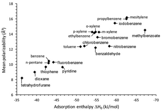 - Duerinck, T.; Couck, S.; Vermoortele, F.; de Vos, D.E.; Baron, G.V.; Denayer, J.F.M. Pulse gas chromatographic study of adsorption of substituted aromatics and heterocyclic molecules on MIL-47 at zero coverage. Langmuir 2012, 28, 13883–13891. [Google Scholar] [CrossRef]