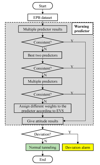 At this step, the performance of eight AI algorithms is compared through the EVS and RMSE indicators. Based on the model prediction results, we propose a warning predictor of SMA. When the predictor perceives that the SMA is about to deviate from the DTA significantly, it can provide an early warning for the machine operators to adjust the tunneling parameters.