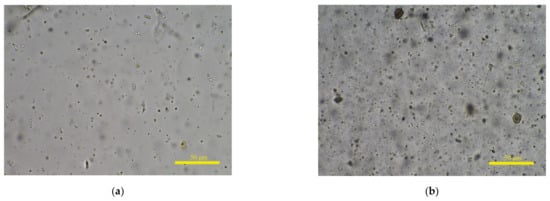 Existing IQA research mainly focuses on how to make algorithm response values more relevant to HVS. The Spearman rank-order correlation coefficient (SROCC) is the most commonly used indicator to evaluate the performance of IQA methods. To verify the effectiveness of a proposed algorithm, many researchers conduct experiments on public databases such as LIVE [13] and TID2013 [14]. The distorted images in these databases are synthetically generated and the degree of degradation is the same everywhere in each distorted image. Compared with public databases, the situations in fecal microscopic images are more complex. On the one hand, the change in fog level is more continuous, and the clarity rating needs to be more refined. On the other hand, human feces contain numerous items, such as undigested food residues, epithelium, and bacteria, and the concentration of substances in different sample solutions is various. Shown in Figure 1a,b are clear microscopic images from a sample solution with low and high concentrations, respectively. Only a small amount of fungal spores is shown in (a), but (b) contains a large amount of particulate matter.