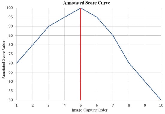 Annotated score curve of the image group displayed in Figure 5a. The abscissa is the image capture order in the autofocus process, and the 5th image is the clearest image. The ordinate is the annotated score value.