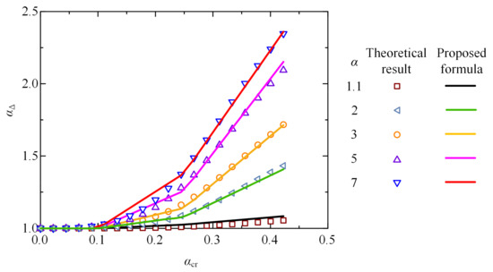 Variation in vertical deflection correction factor αΔ with parameters α and αcr.