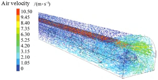 - Wang, M.; Jiang, Z.; Tian, D.; Zhang, C. Numerical Simulation on Compound Ventilation and Dust Removal in Fully Mechanized Excavation Face of Rock Roadway. J. North China Inst. Sci. Technol. 2019, 16, 11–17. [Google Scholar]
